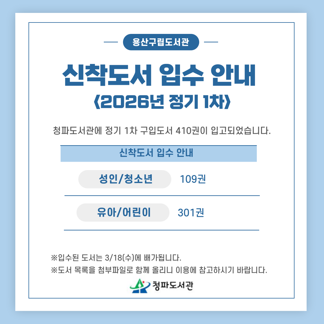 [도서] 2026년 신착도서 입수 안내 (정기 1차)