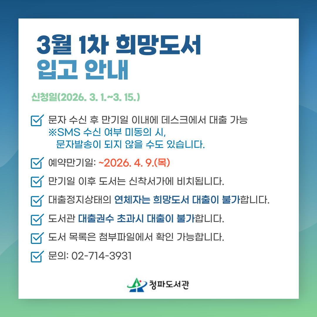 [도서] 2026년 희망도서 입수 안내(3월 1차)