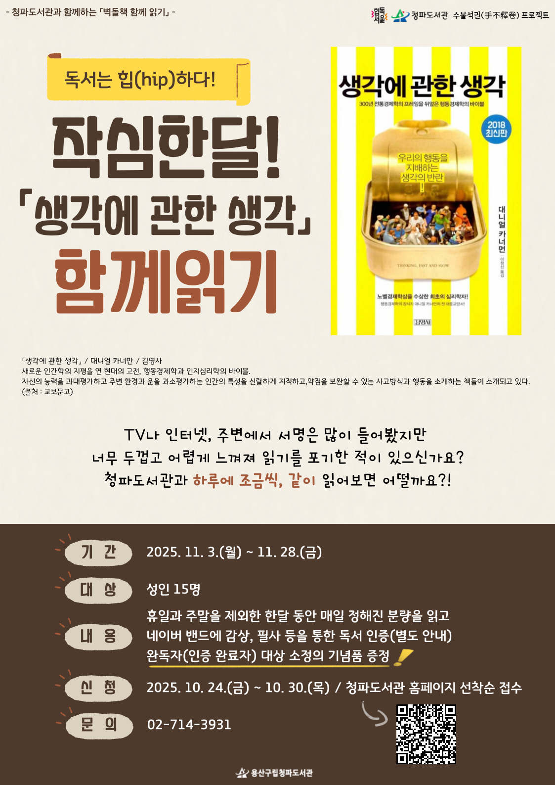 프로그램명 | 예정 11월 작심한달! 『생각에 관한 생각』 함께 읽기 |