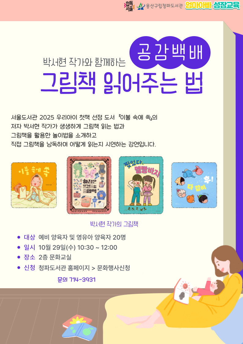 프로그램명 | 접수중 박서현 작가와 함께 하는 공감백배 그림책 읽어주는 법 |