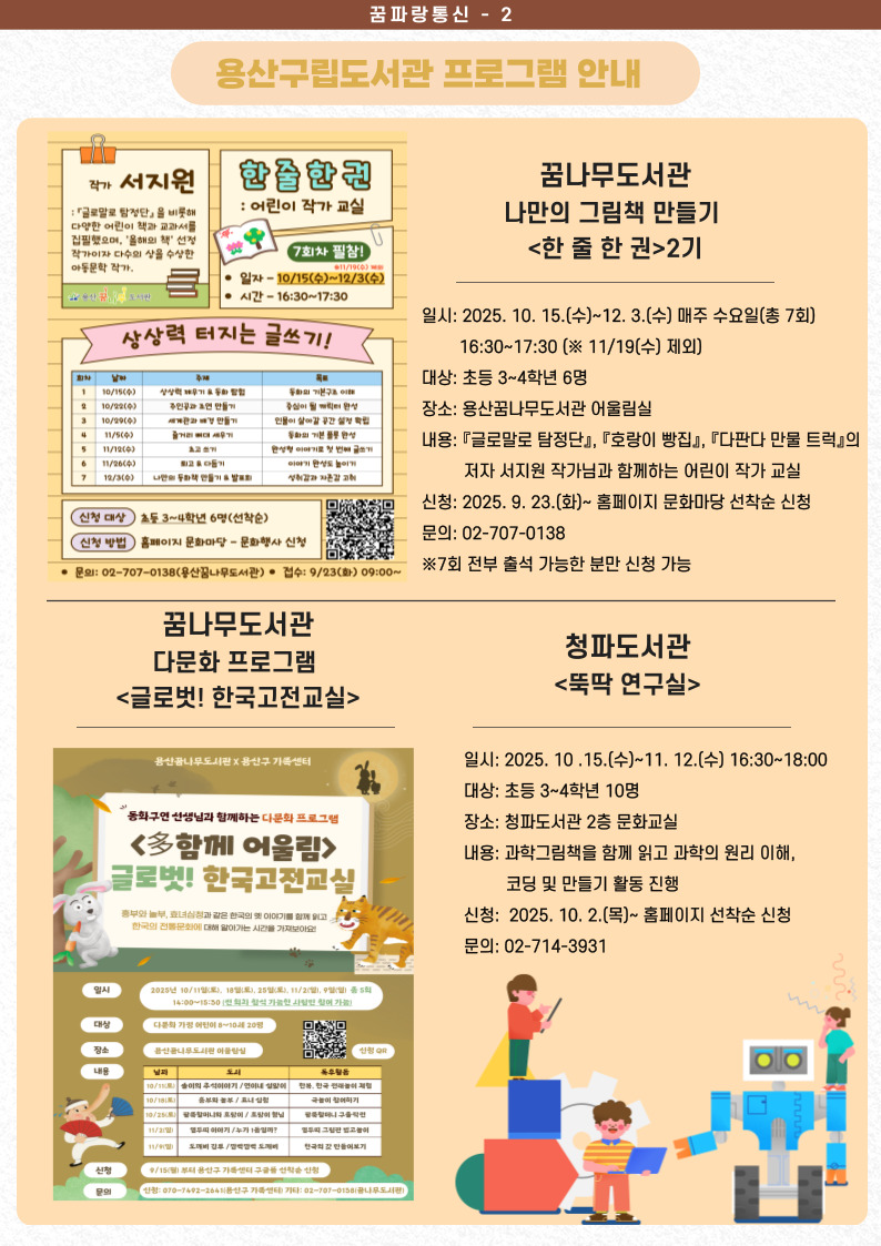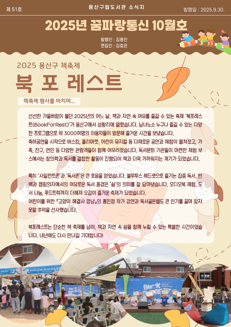 [꿈파랑통신] 용산구립도서관 소식지 2025년 10월호 (제51호)