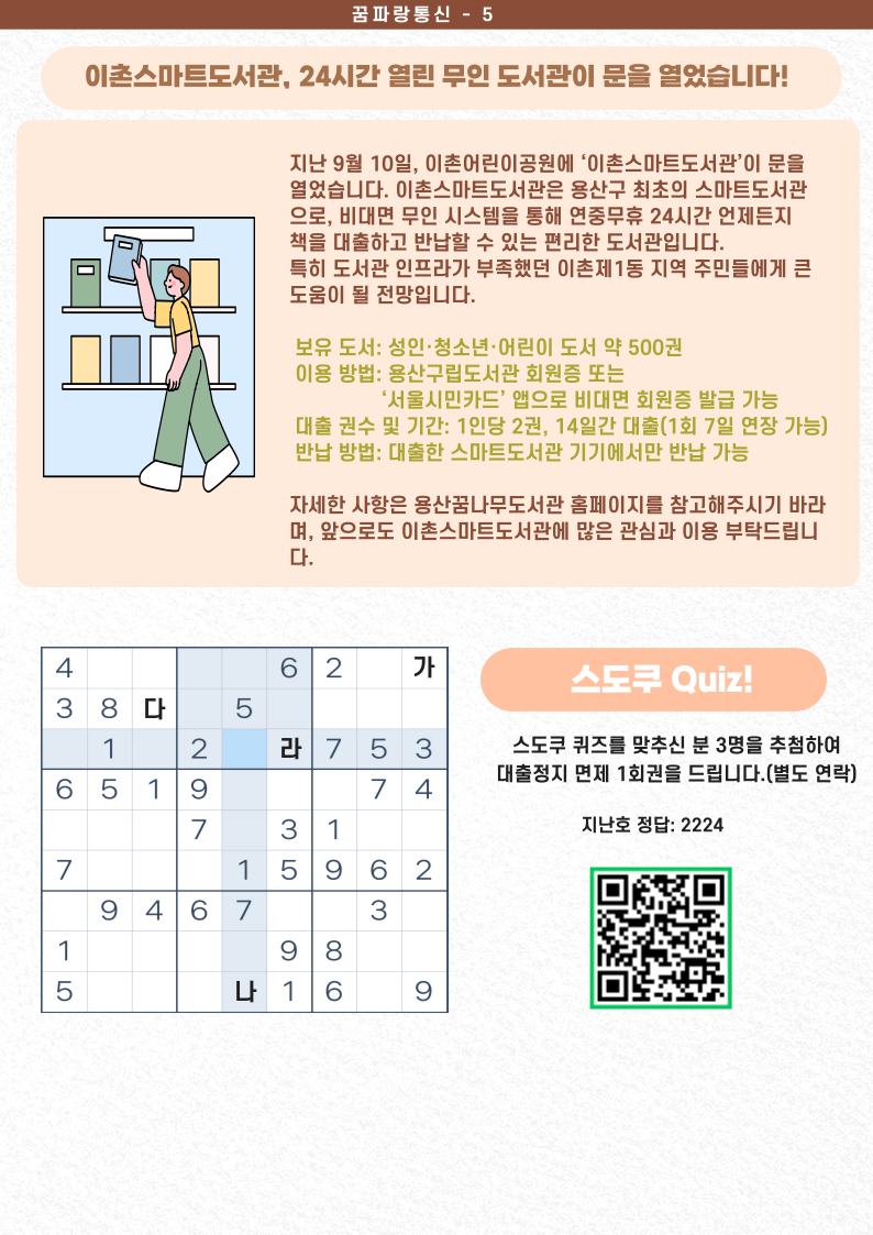 오프라인으로는 꿈나무도서관 전시서가에 매달 소식지를 전시하오니