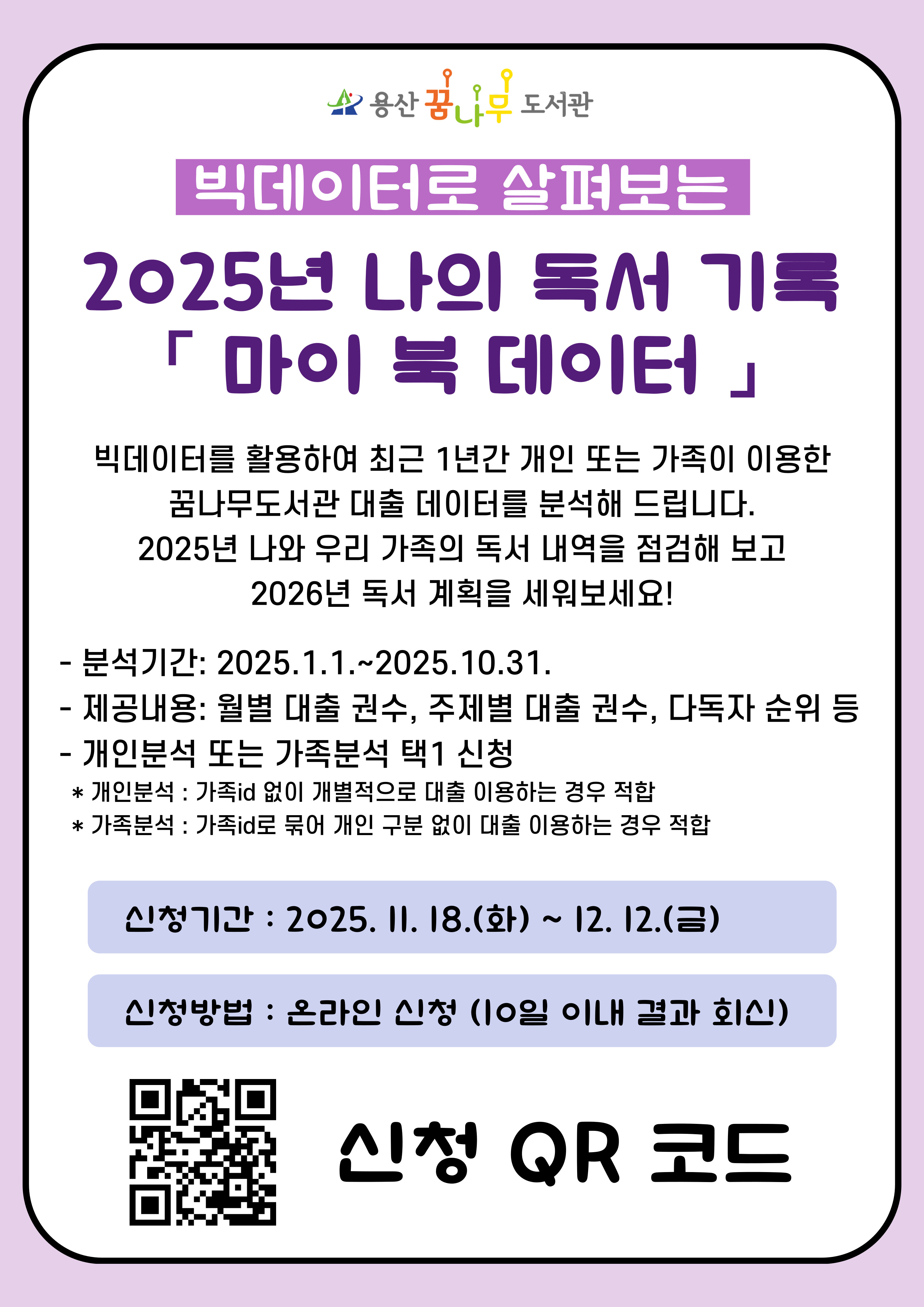 <마이 북 데이터> 신청하시고 추천도서 목록도 받아보세요.