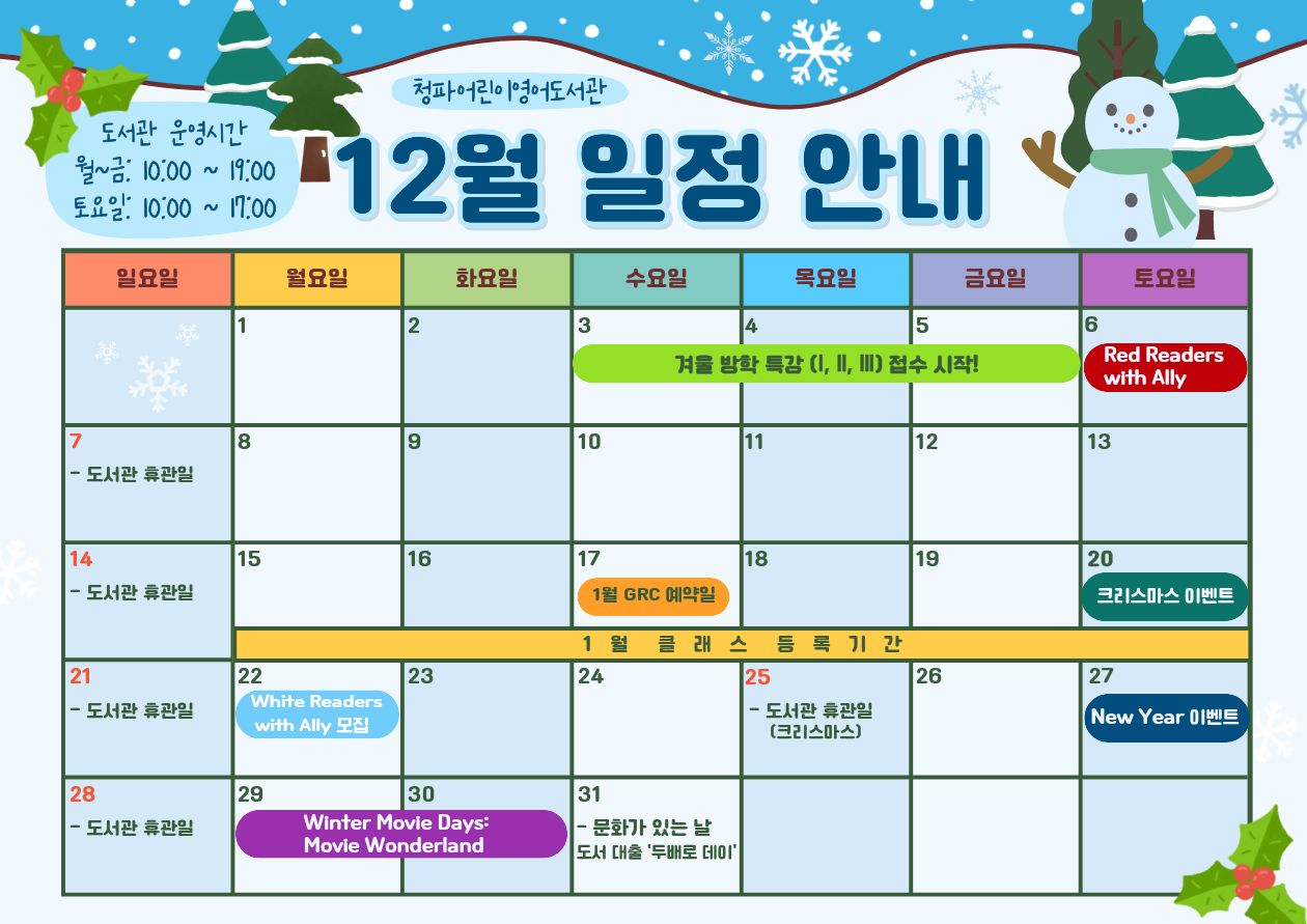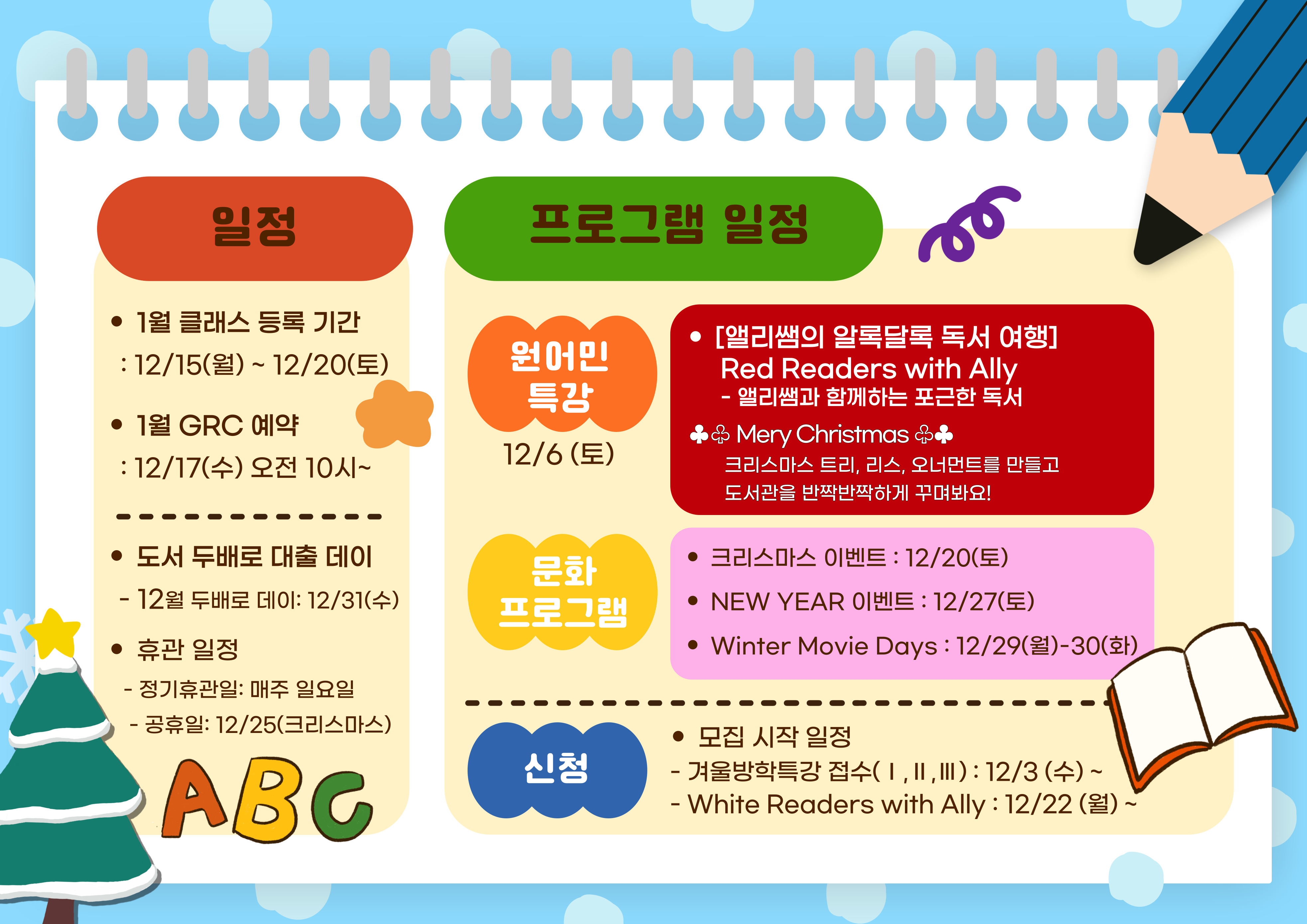 청파어린이영어도서관 2026 겨울학기(2025년 12월-2026년 2월) 프로그램 시간표