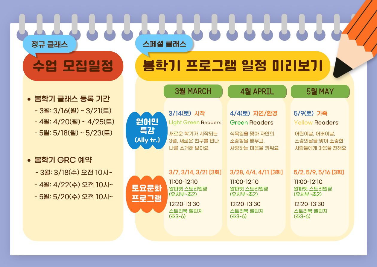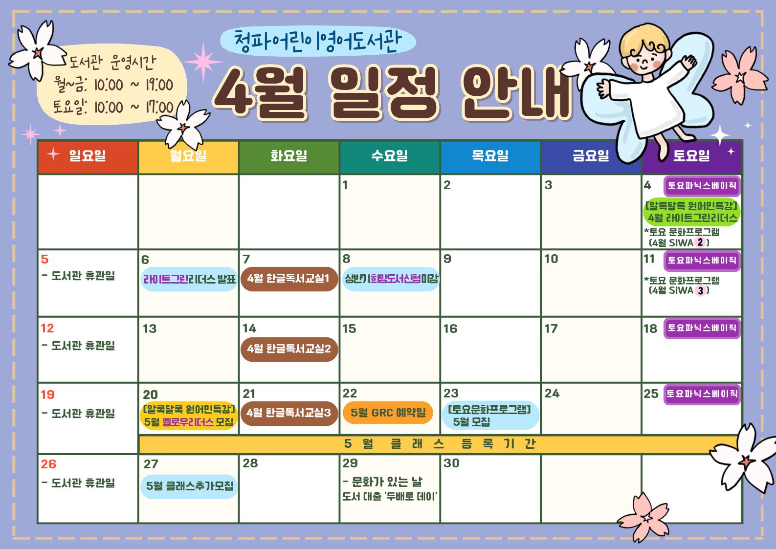 청파어린이영어도서관 2026 봄학기(4-5월) 프로그램 시간표