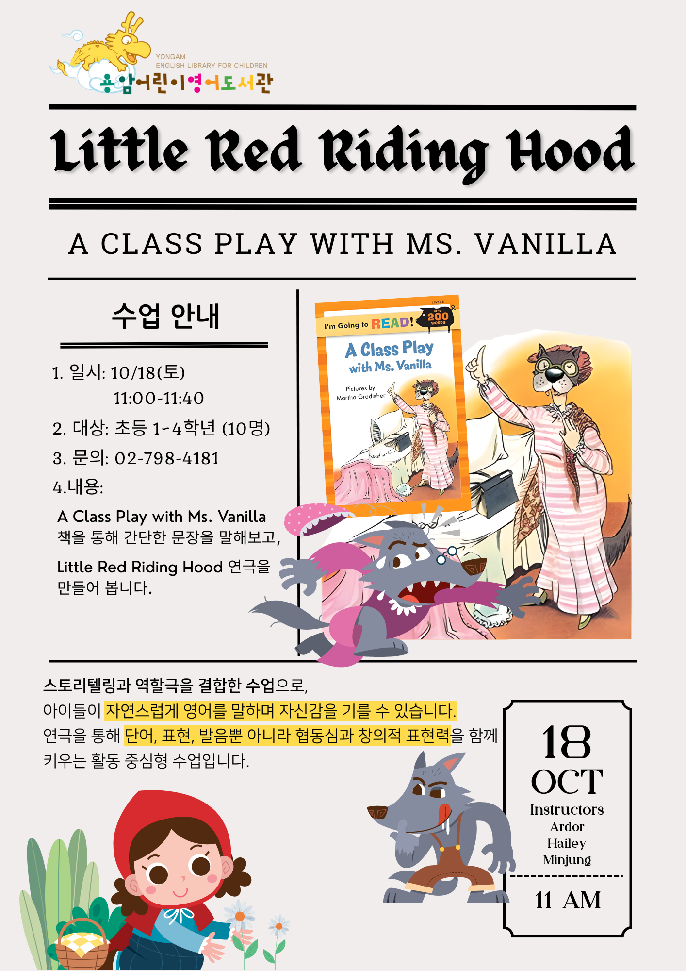프로그램명 | 종료 [토요특강] Little Red Riding Hood: A Class Play with Ms, Vanilla |
