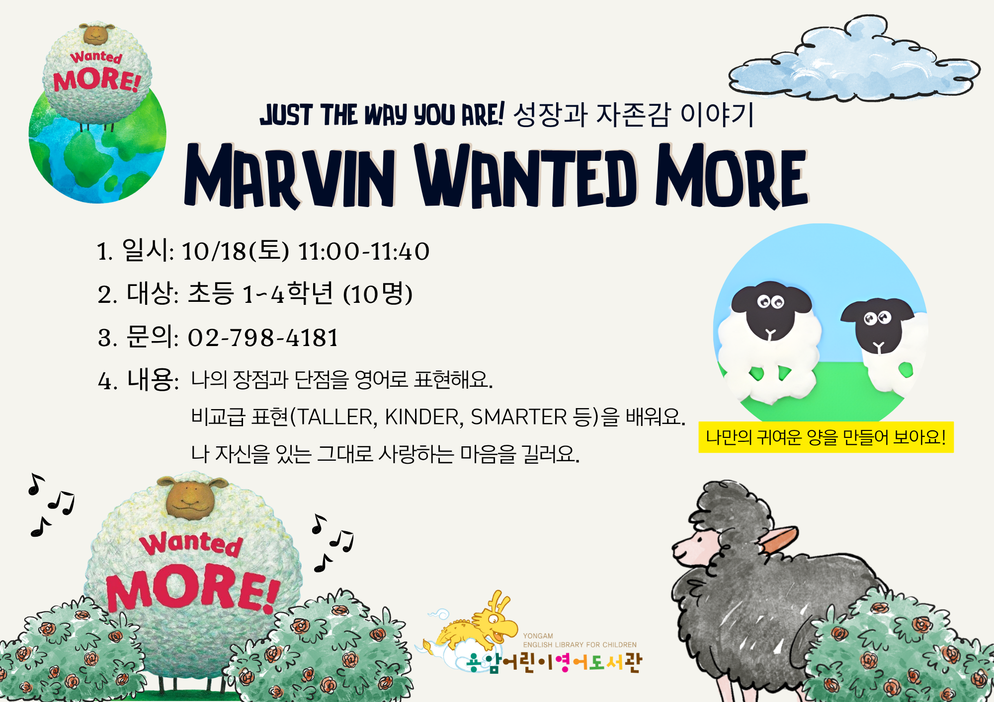 프로그램명 | 접수중 [토요특강] Just the way you are! 성장과 자존감 이야기: Marvin Wanted More |