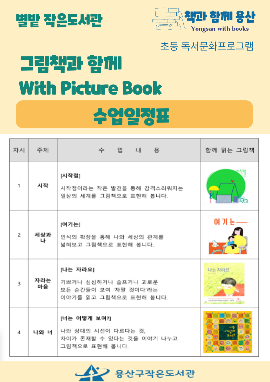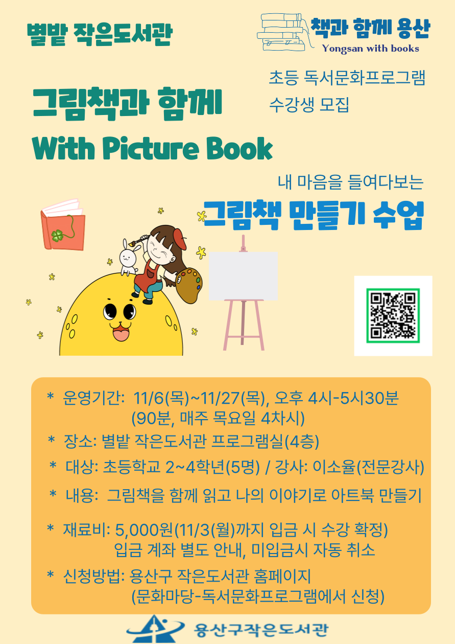 | 프로그램명 | 접수중 그림책과 함께: (내 마음을 들여다보는) 그림책 만들기 수업 |