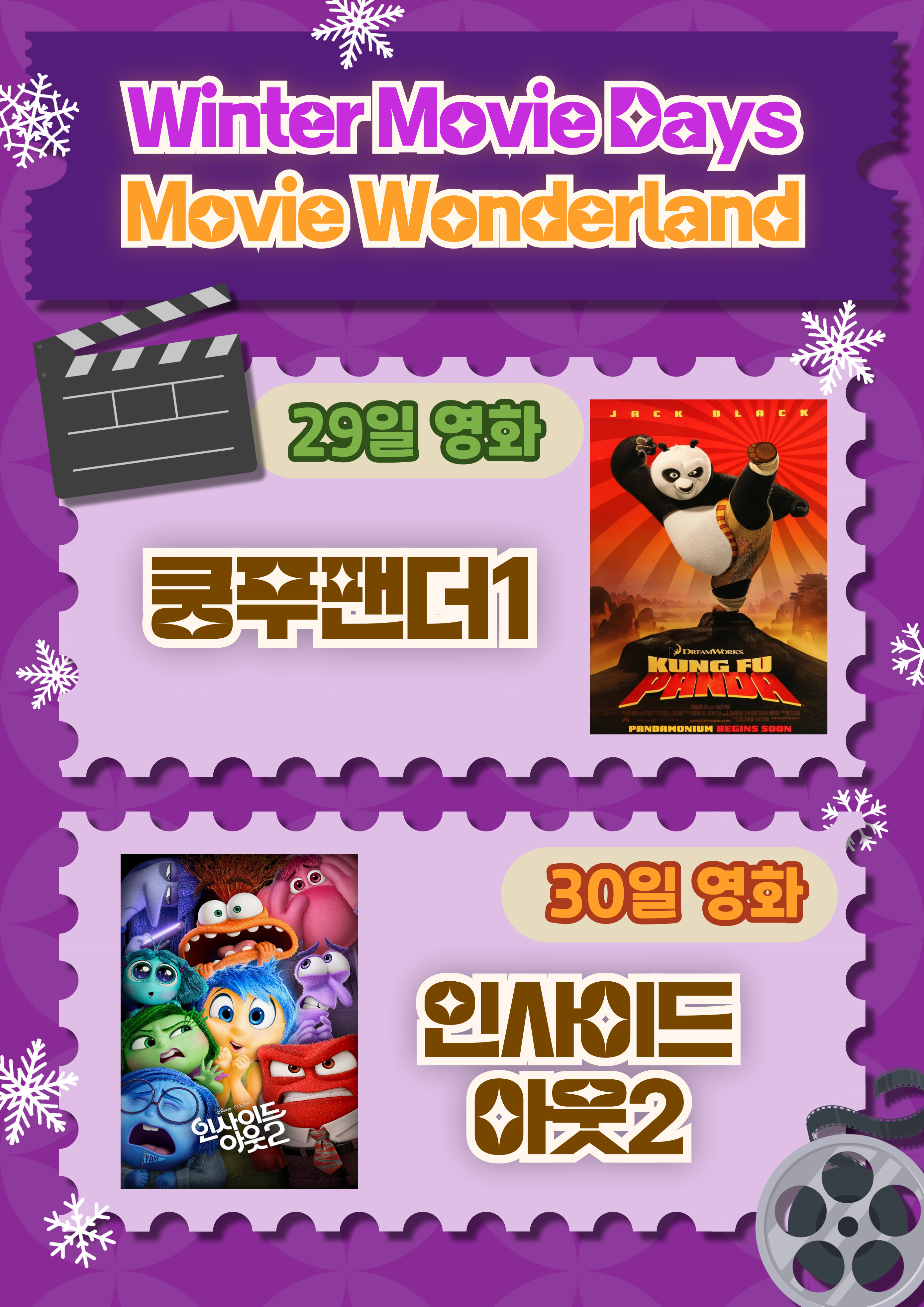 | 프로그램명 | 종료 12월 겨울방학기념 문화프로그램 <Winter Movie Days - Movie Wonderland> A반 수업 모집 |
