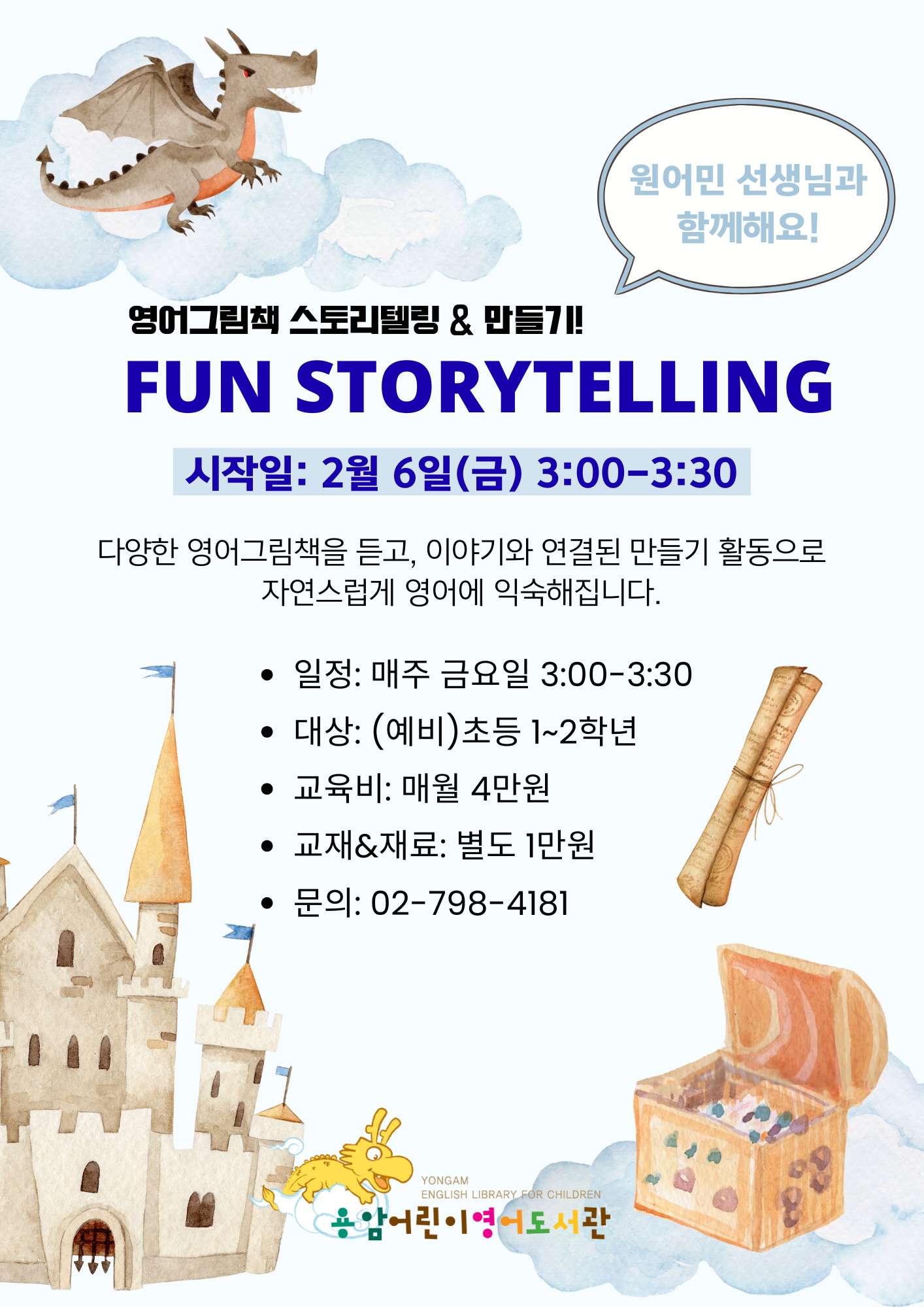 | 프로그램명 | 접수중 [추가모집] (초등) Fun Storytelling A (금 3:00~) |