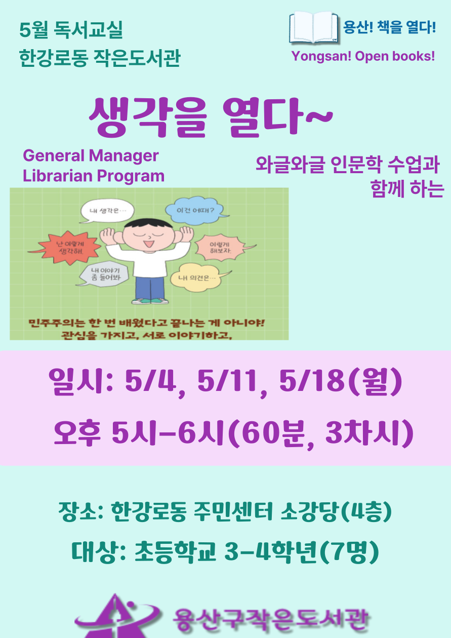 | 프로그램명 | 예정 [초등독서교실] 생각을 열다 |