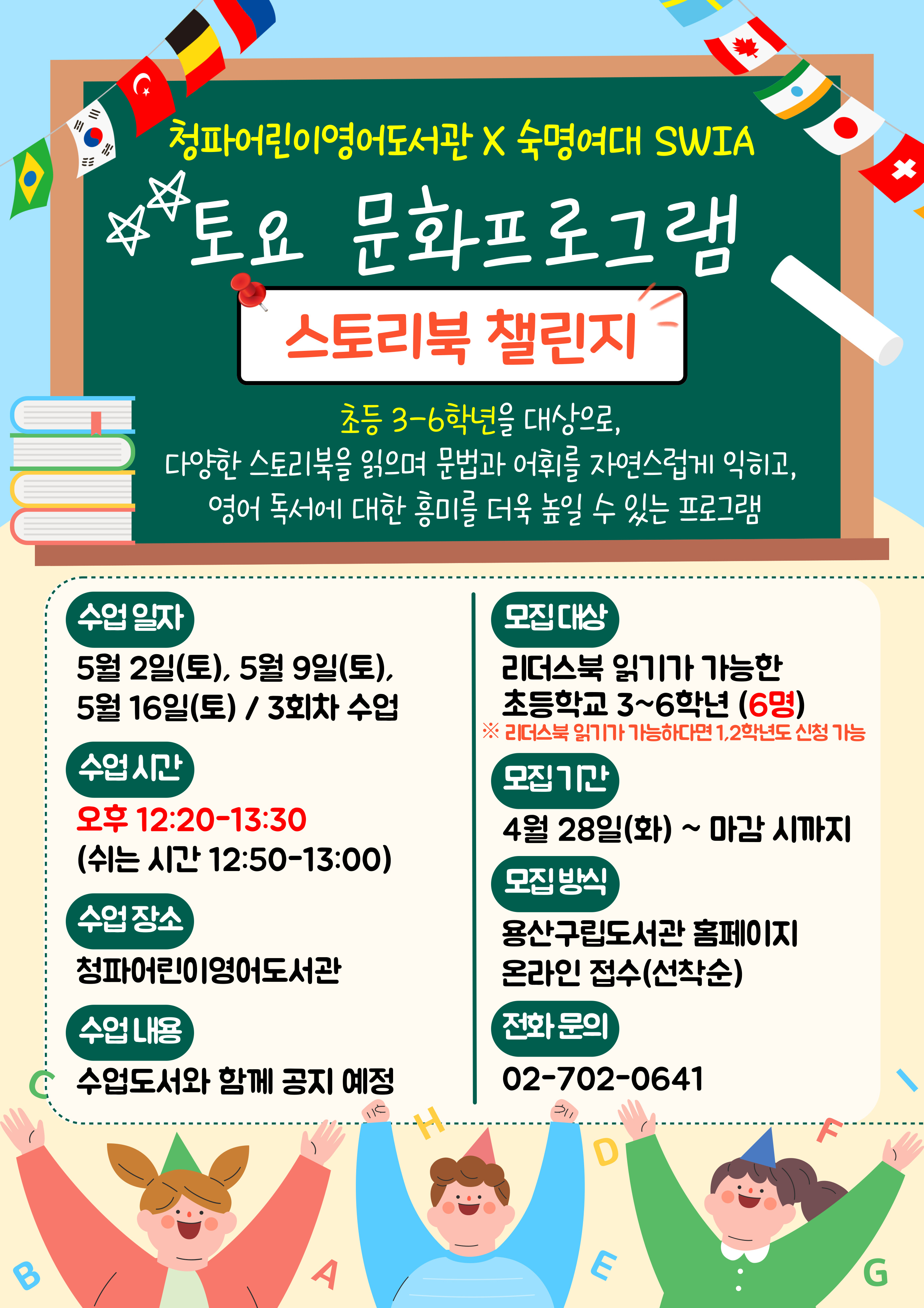 | 프로그램명 | 접수중 [토요 문화프로그램] SIWA 스토리북 챌린지 모집 (12:20-13:30) |