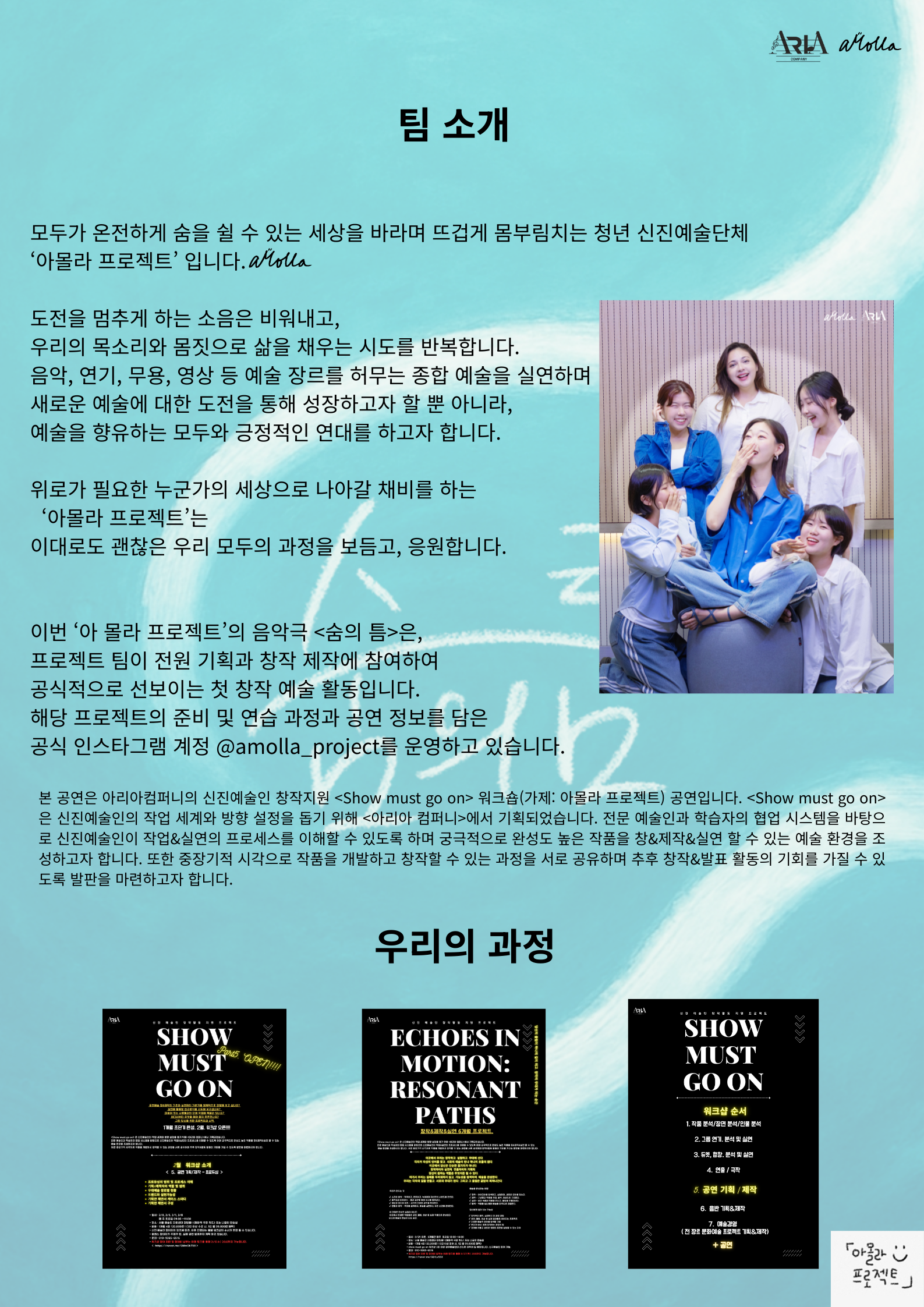 👥 공연팀: 아몰라 프로젝트 (예술로 협업사업 신진예술인팀)