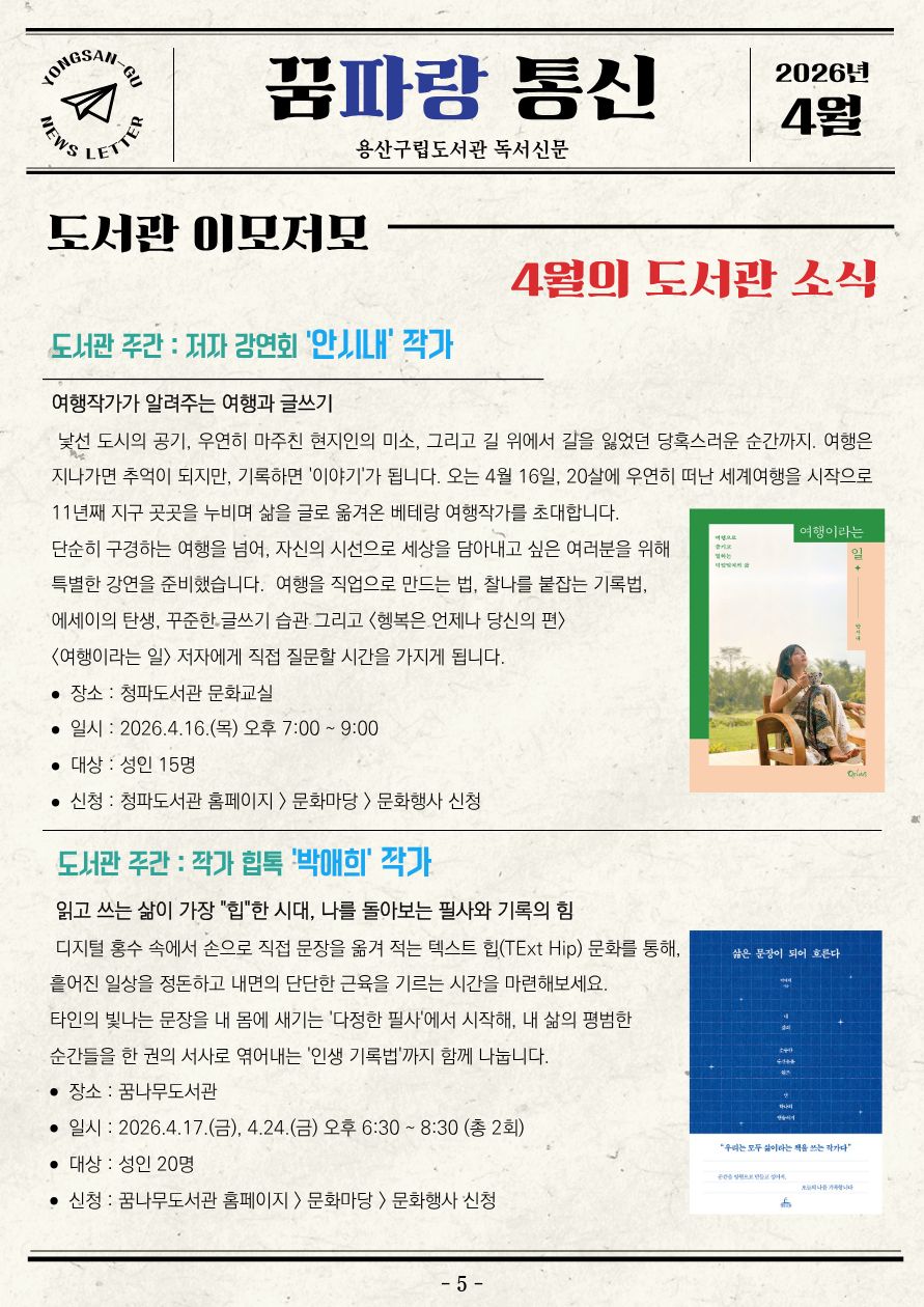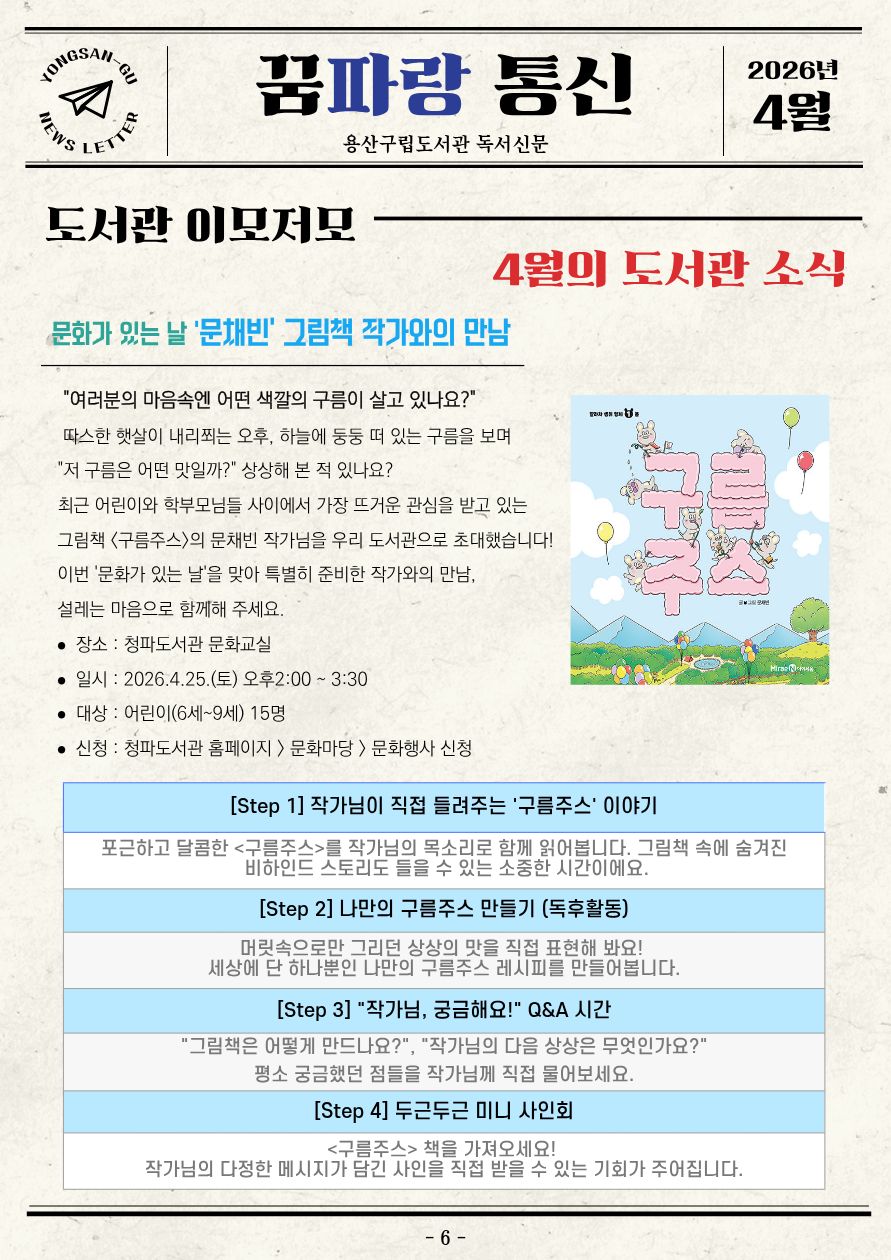 [꿈파랑통신] 용산구립도서관 소식지 2026년 4월호 (제56호)