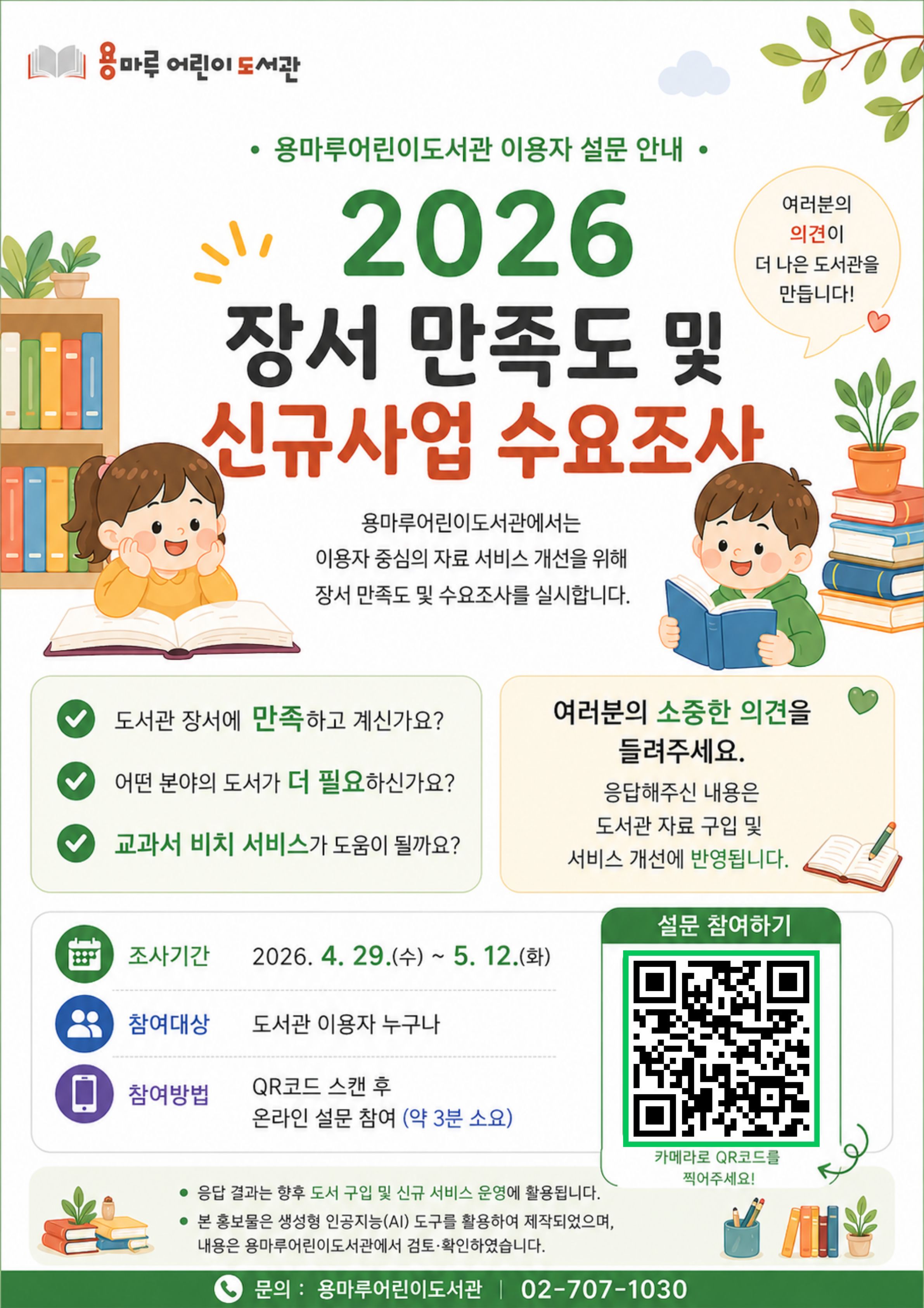 - 조 사 명: 2026년 용마루어린이도서관 장서 만족도 및 신규사업 수요조사