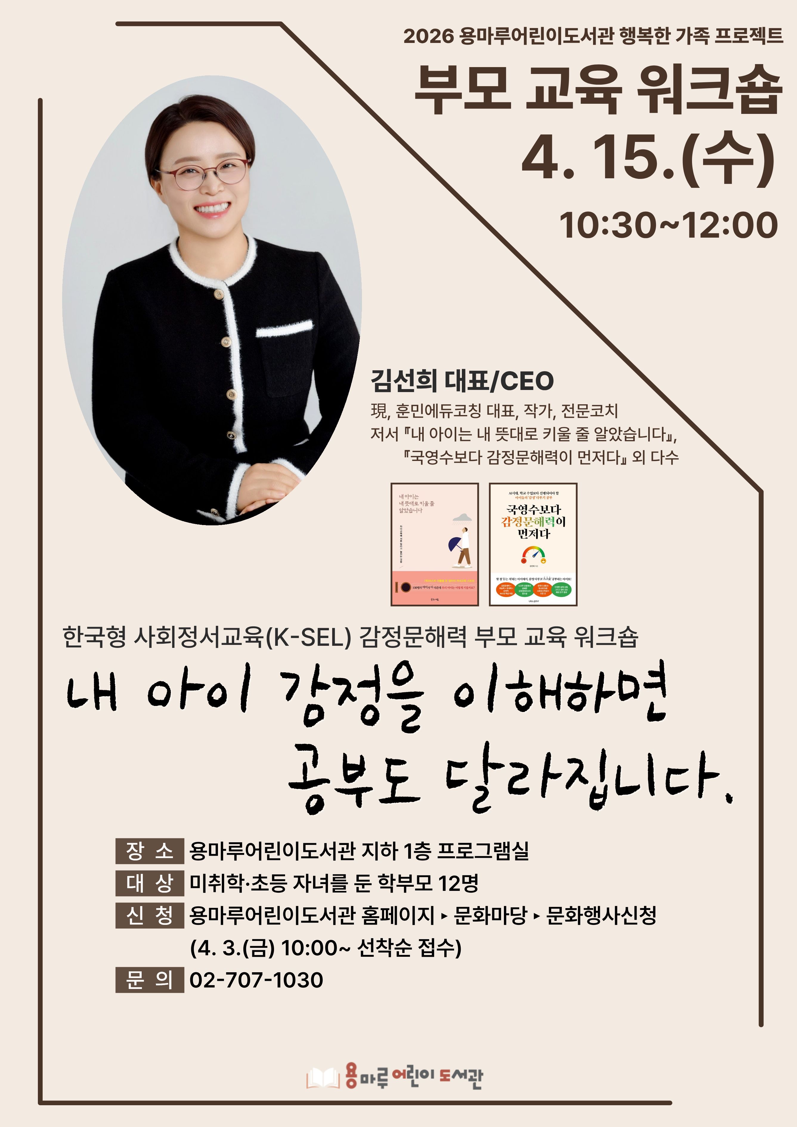 | 프로그램명 | 예정 [부모 교육 워크숍] 내 아이 감정을 이해하면 공부도 달라집니다. |