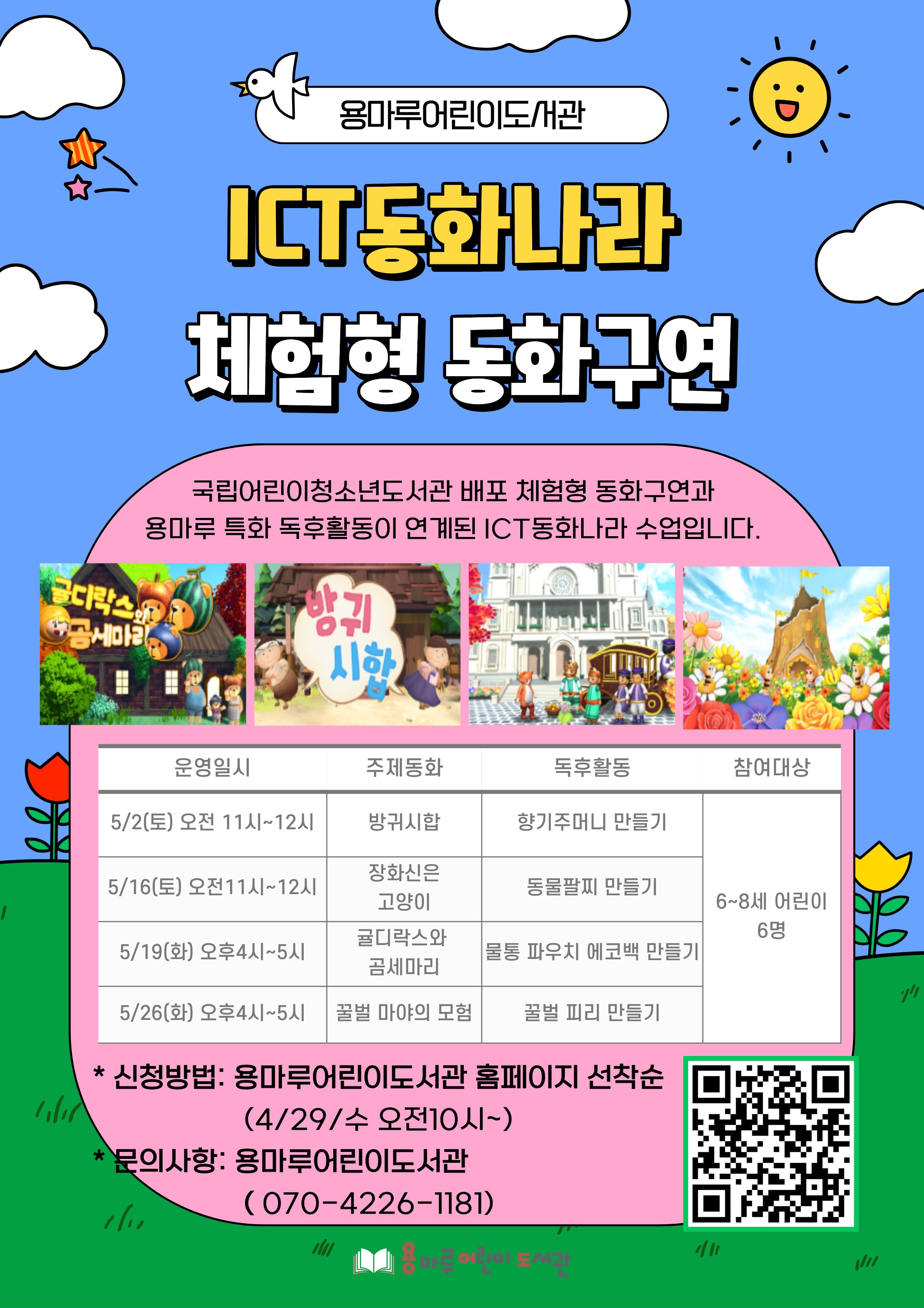 5월 ICT 동화나라_ 체험형 동화구연 '꿀벌마야의 모험'(5/26/화 16:00~17:00, 6~8세 어린이) 5월 26일 화요일 오후 4시~5시, 6~8세 어린이 체험형 동화구연 접수 페이지 입니다★ - 참가자 정보에 꼭 ★어린이 이름★ 작성해주세요! (참가자 정보를 기준으로 수업전 이름표를 만들고있습니다~!) 4/29(수) 오전10시부터 선착순 접수 입니다! - 운영직전에 취소하시면 다른 분들의 참여 기회도 제한됩니다 ㅠ_ㅠ 신청완료 후에는 꼭 참여해주세요 ♥